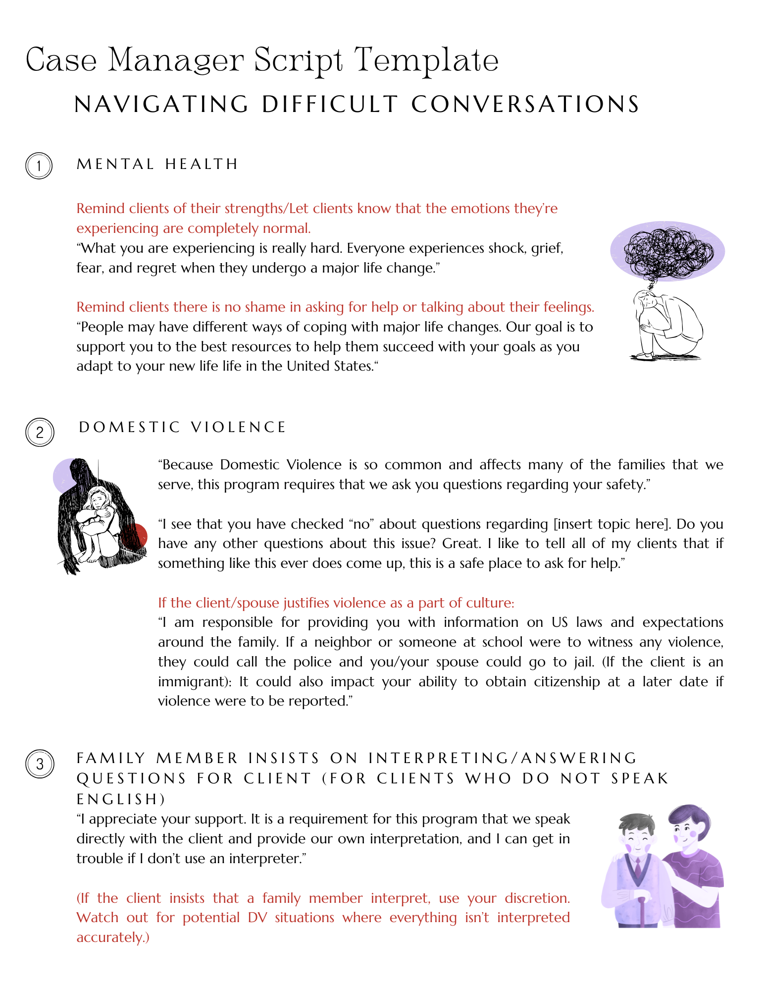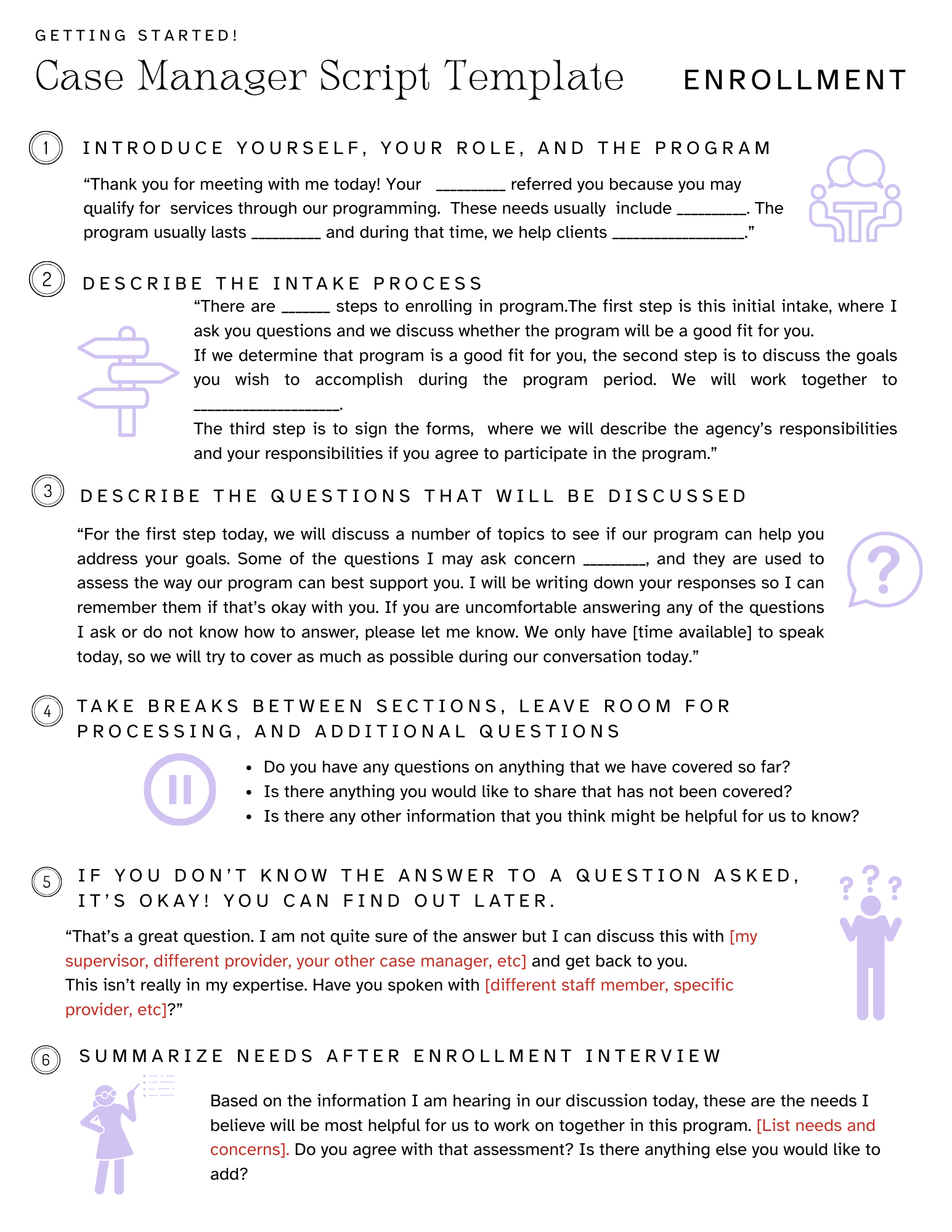 fillable form with picture illustrations for clients with low literacy levels or clients with limited English proficiency
